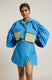 LAGOON BLUE CROP SHIRT WITH DRAWSTRING AND TWIL PATCH POCKETS DETAILING PAIRED WITH SKORTS