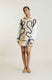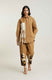 BEIGE SHIRT WITH PLEATED DENIM AND HAKOBA SLEEVE DETAILING PAIRED WITH BEIGE SKORTS